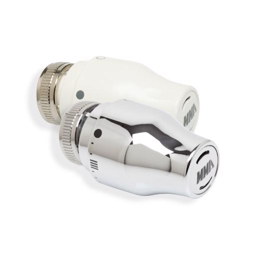 Selvvirkende termostat for regulering av ventiler og innsatser. Maks og min bergensningsmuligheter er skjult i termostaten.
